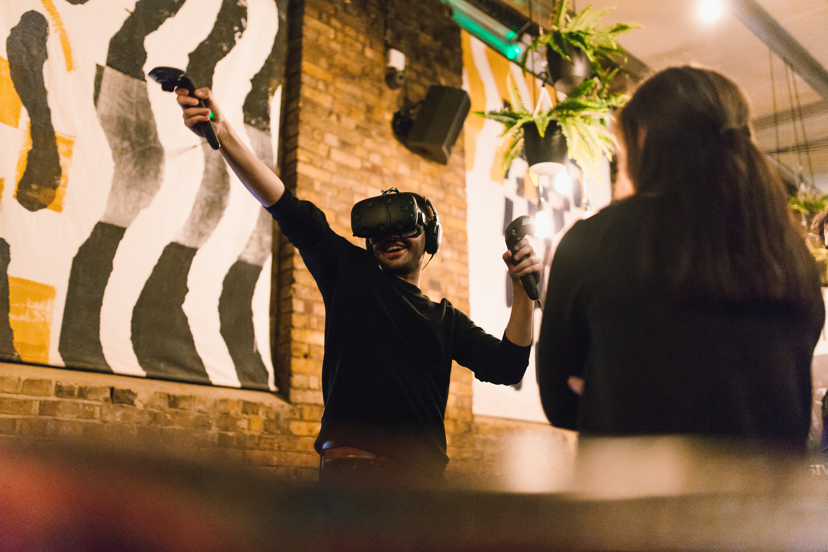 Across two rooms of our cozy Shoreditch venue, the selection of Samsung Gear, Oculus, and Vive headsets also allowed visitors to experience a range of VR experiences for themselves – all carefully curated by the Kaleidoscope team. We’re particularly proud to have hosted the European premiere of ‘Life of Us’ – one of the world’s very first VR experiences to place multiple people inside of a shared virtual space, telling the breathtaking story of humanity’s evolution from protozoa to tadpole to homo sapien and beyond.